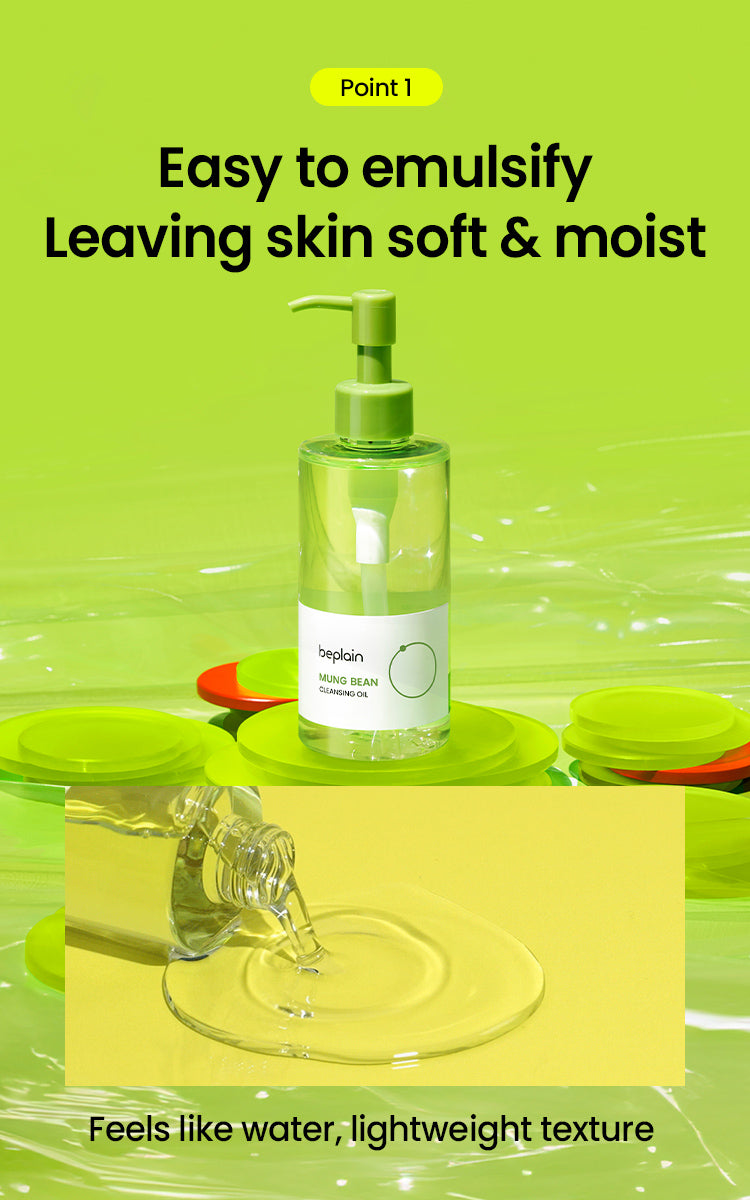 The Beplain Mung Bean Cleansing Oil is a gentle yet highly effective cleansing oil designed to remove makeup, sunscreen, and impurities while nourishing the skin. Powered by mung bean extract and mung bean seed oil, this cleansing oil purifies clogged pores, balances excess sebum, and provides a deep cleanse without leaving the skin feeling stripped. Its lightweight texture emulsifies easily, leaving skin refreshed, soft, and hydrated.