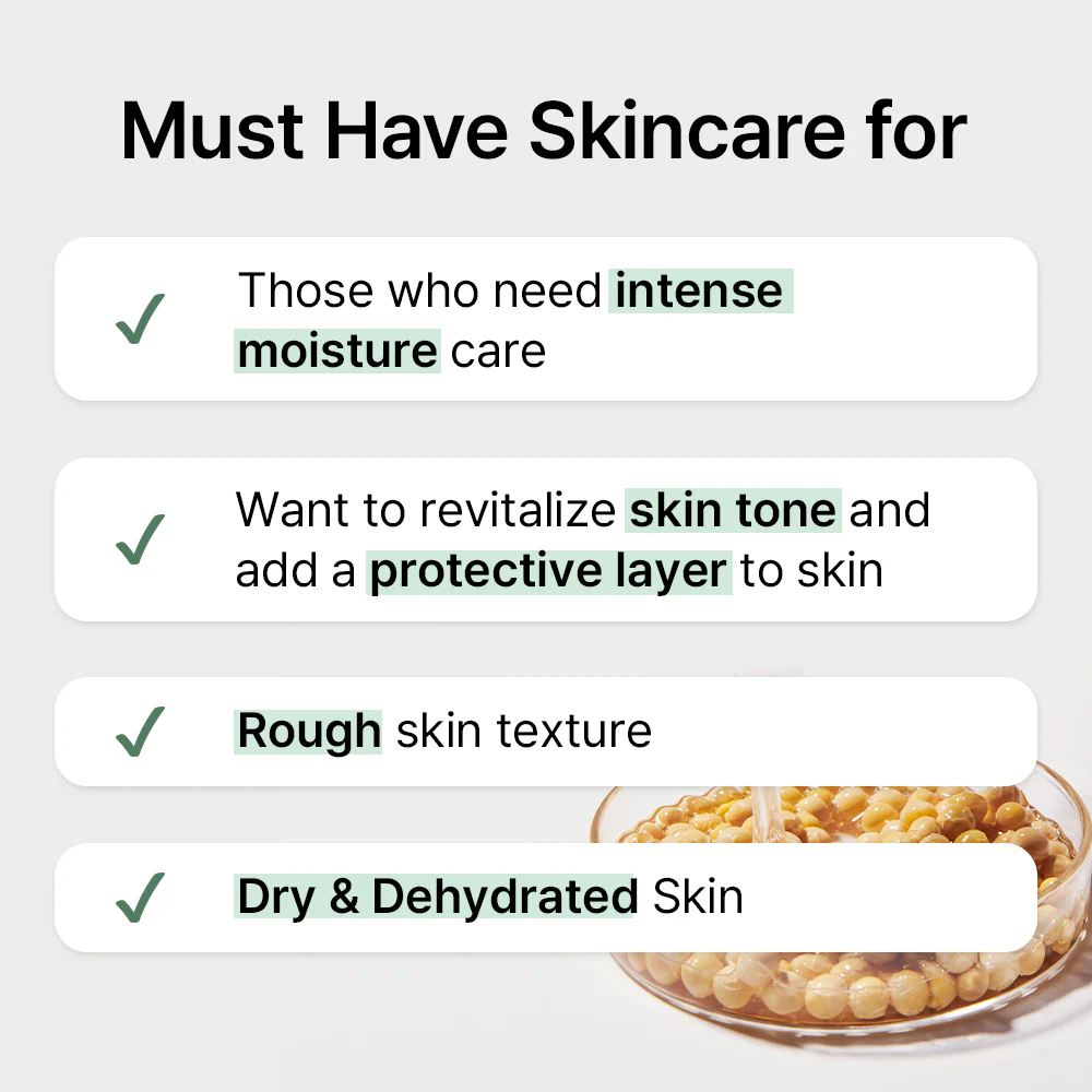 - Hydrating & Soothing: Fermented soybean extracts deliver long-lasting hydration while calming irritation.