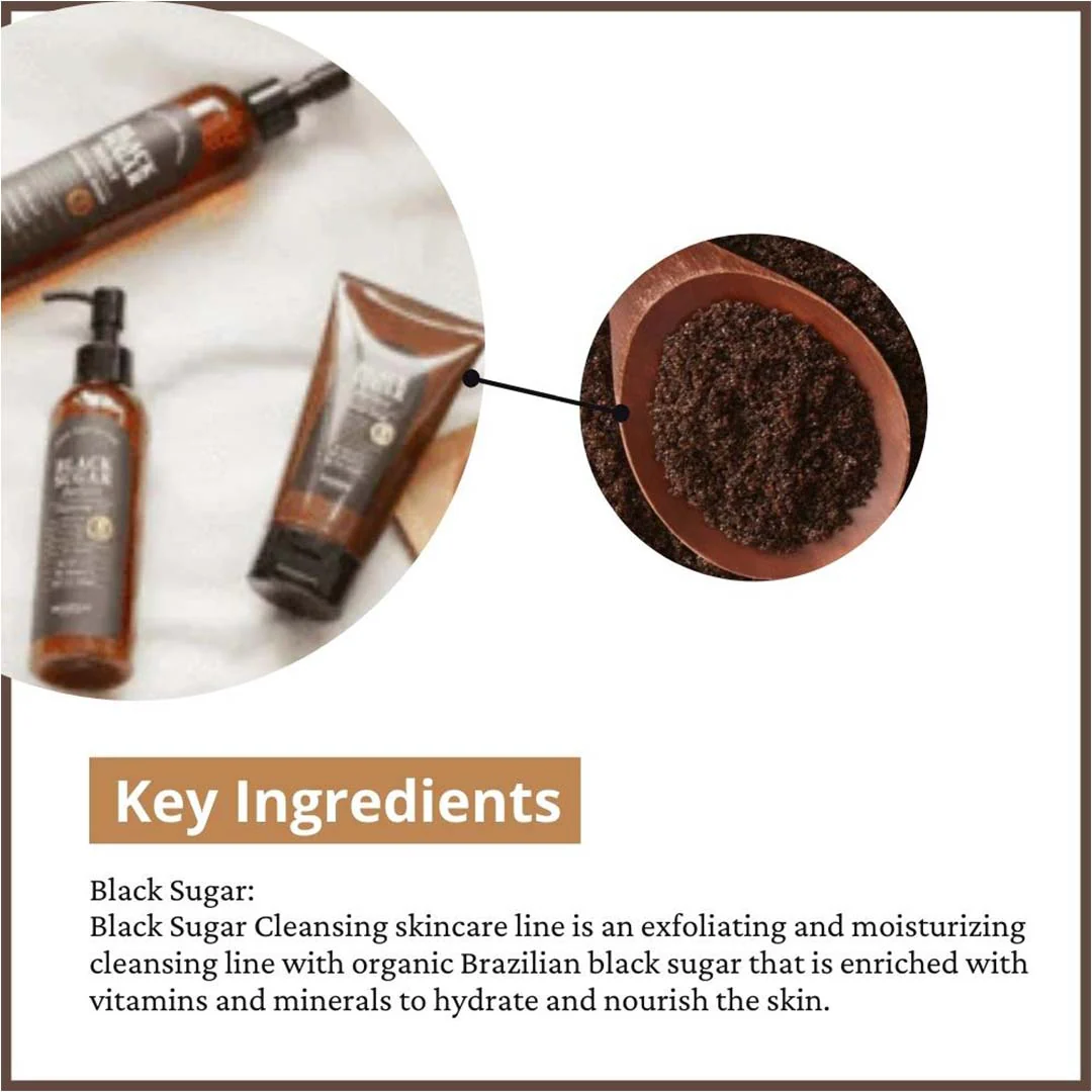 - Black Sugar – A natural exfoliant rich in minerals that help remove dead skin cells and brighten the complexion.