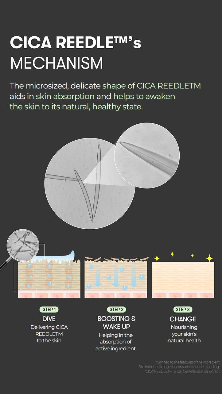 - Cica Reedle™ (Centella Asiatica Complex): Strengthens the skin barrier, soothes irritation, and aids in skin repair.
